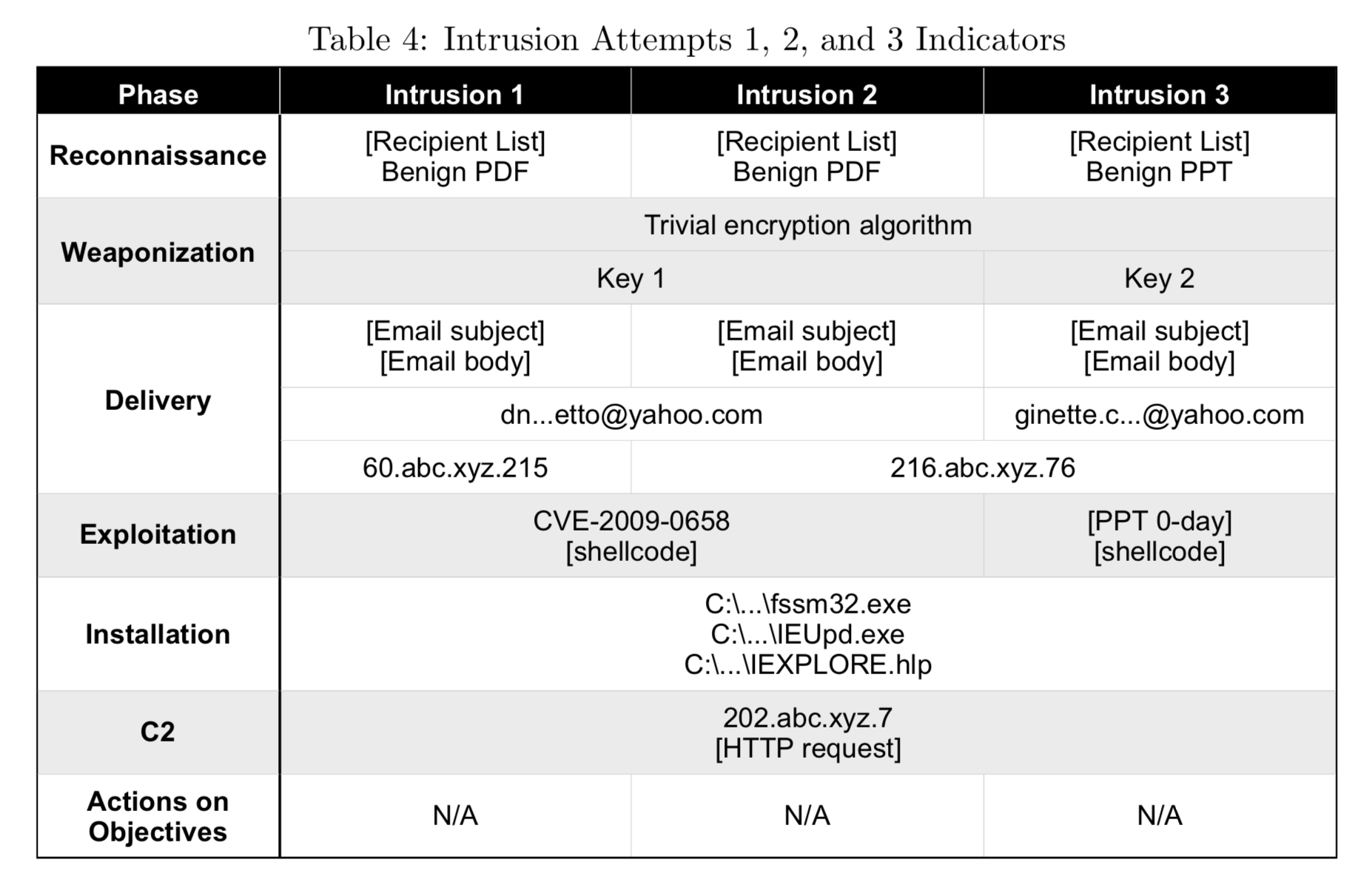 文章第四节有一个实际案例分析,针对第一次入侵,应用情报防御了一个已知 0-day。通过每一次入侵的完整分析,获得更多指标。最后针对第三次入侵,通过投送阶段的已知指标(downstream IP地址:216.abc.xyz.76)遏制住了本次入侵后续阶段的未知0-day攻击。