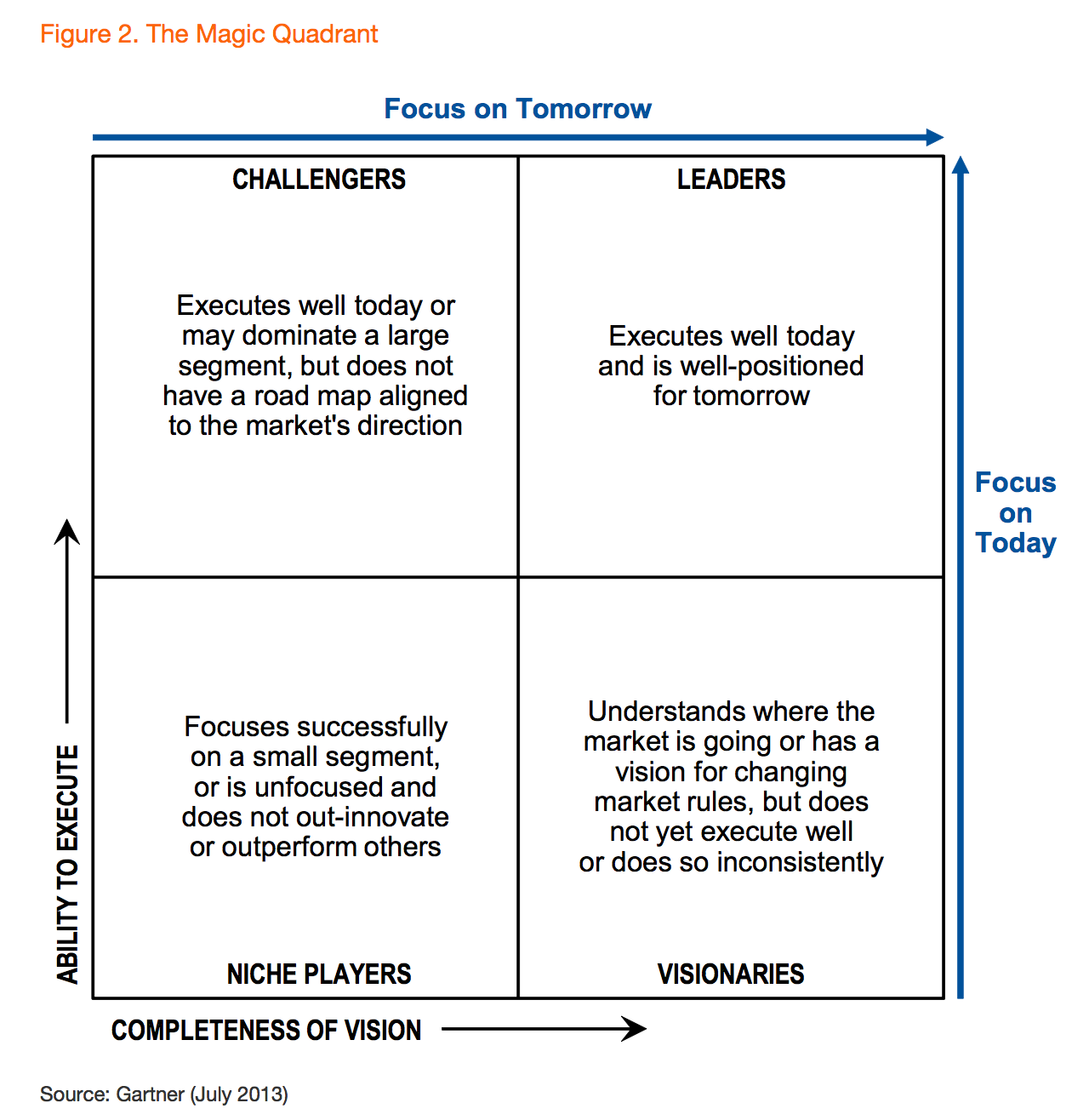 源:How Gartner Evaluate Vendors and Markets in Magic Quadrants and MarketScopes, David Black, Julie Thomas, 2013 ↩