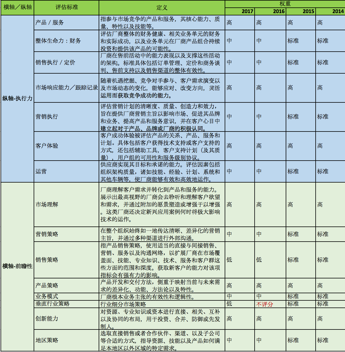 MQ的研究首先会明确市场定义,从而界定评估边界,并制定厂商入选和排除标准。入选标准里面通常会包含如下要求: